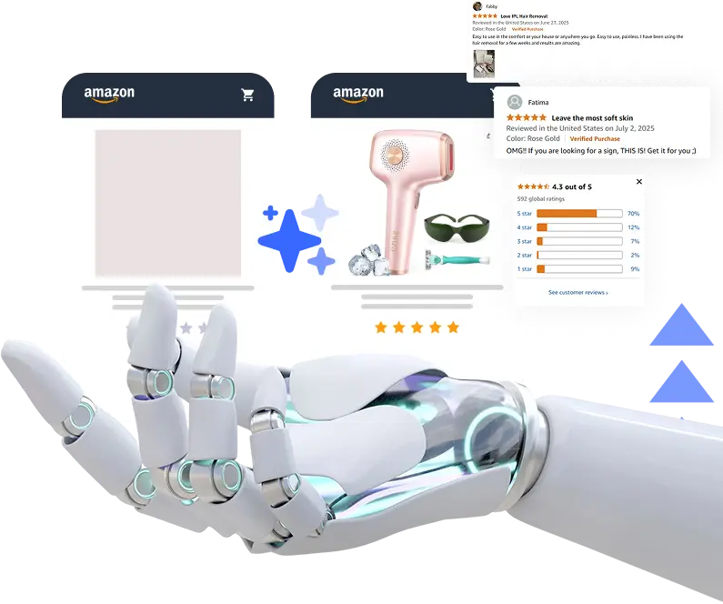 The Review & Rating Analyzer is an AI-powered tool that scans and summarizes customer and competitor reviews. It turns feedback into actionable insights to help you improve listings, boost ratings, and reduce returns.